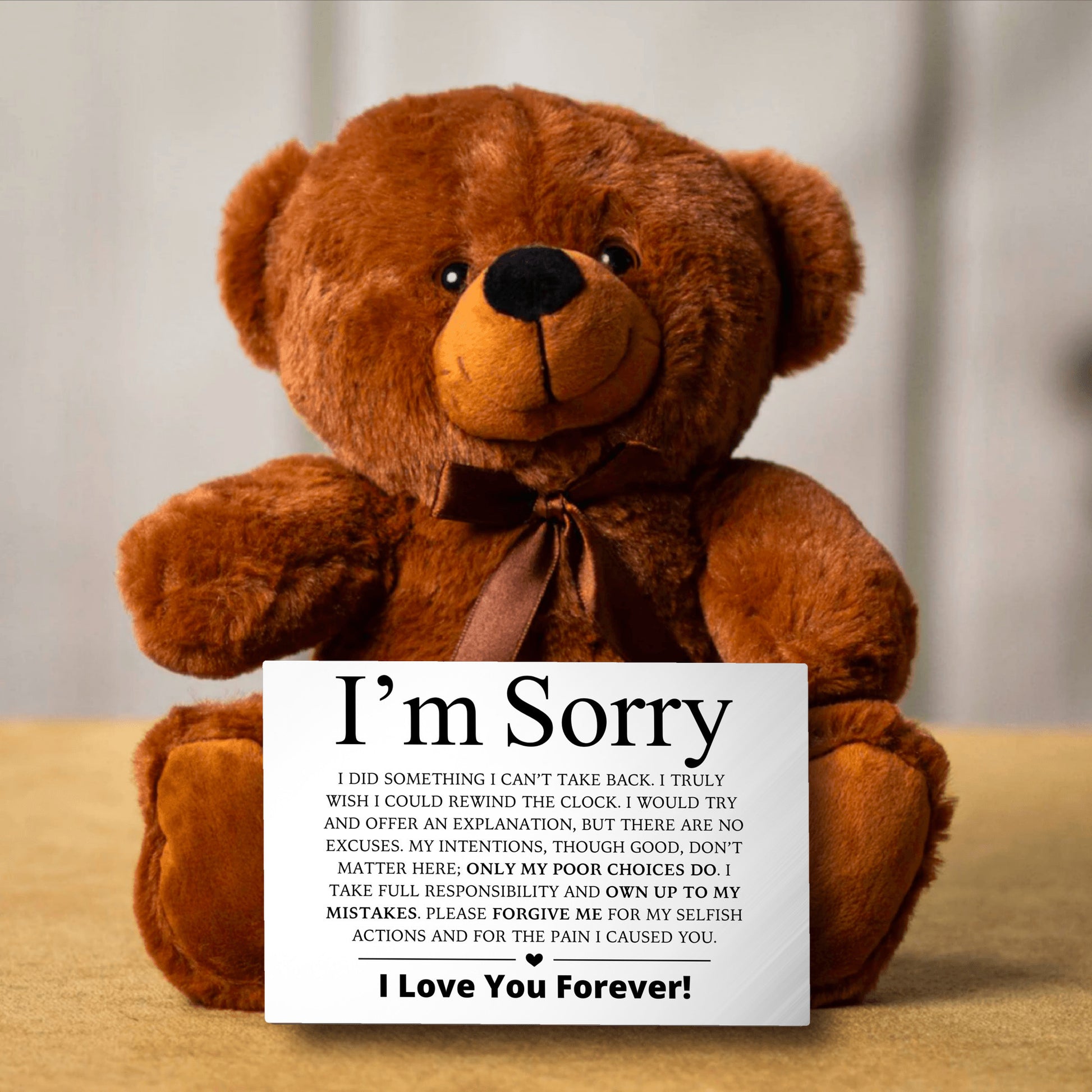 When you’ve made a mistake and words fall short, this teddy bear says it all—softly, sincerely, and straight from the heart.
