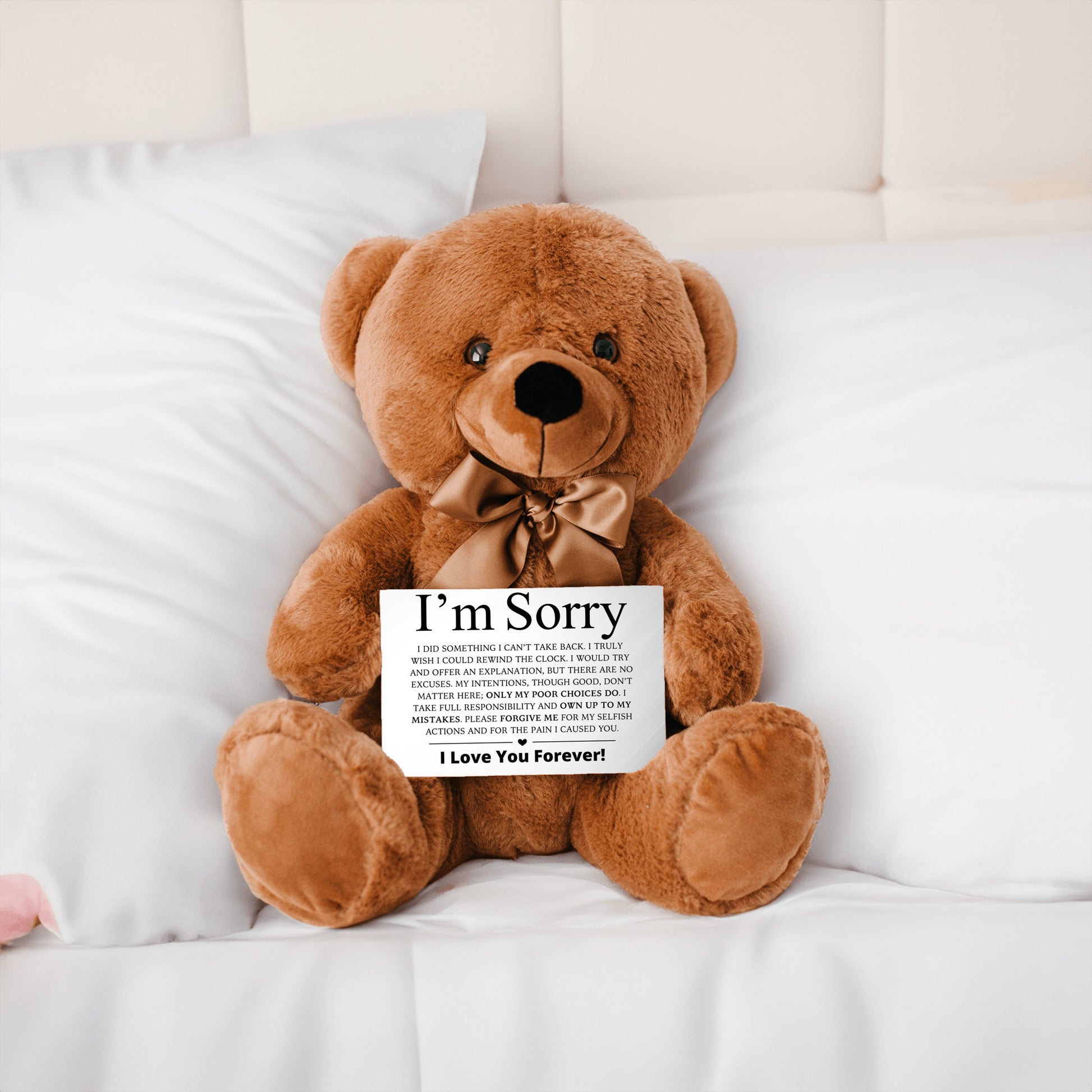 Apology Gift For Her - Teddy Bear with Canvas Message Card (Ships to the USA Only)